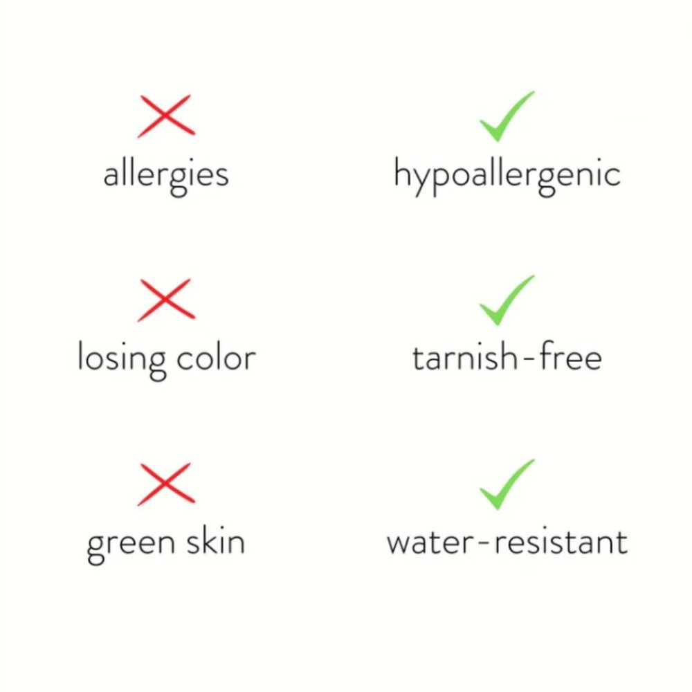 Fabricado en acero inoxidable impermeable, nunca más tendrás que preocuparte por joyas que se descoloren o se empañen.